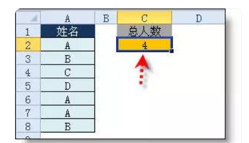 说明:用COUNTIF统计出每人的出现次数,用1除的方式把出现次数变成分母,然后相加。